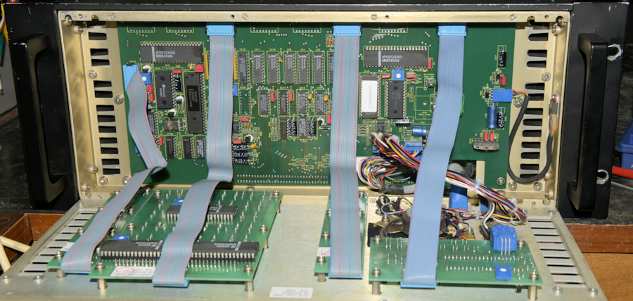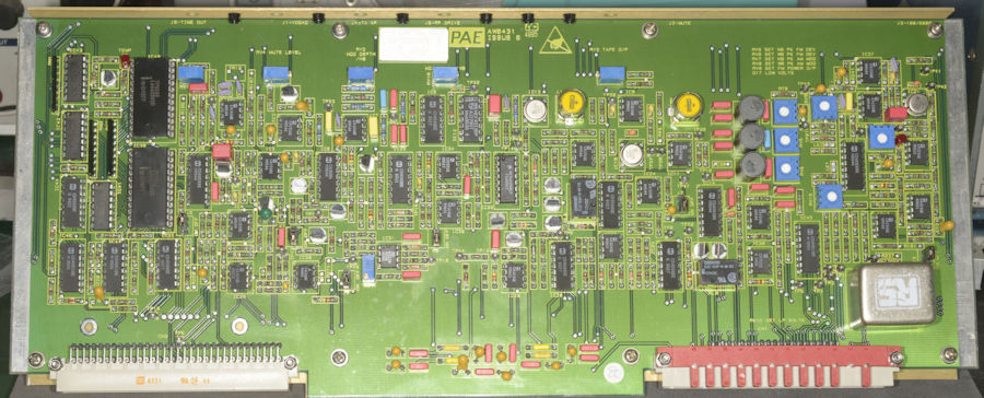 Module-5 is the Remote Controller Interface; designed to allow remote control over 600-ohm lines. As I don't have the PAE 3000EB Remote Control Unit, I have no way of testing it. What I can say is that as with the BITE Assembly and the Synthesiser, the Remote Controller Interface is host to yet another 8031 Microcontroller! The firmware is on a 27C512 64K x 8-bit EEPROM while a 6116 provides the usual 2K x 8-bits of Static RAM. There are also a couple of 22V10 PALs (Programmable Array Logic).
