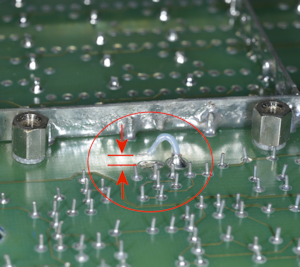 Space is a premium in this compartment, especially where the toroidal mains transformer is concerned. The damage to the switch was the result of the loops of wire between S1 and S2 pressing against the transformer. When you look at the placement of the two switches in relation to the transformer, it is clear that they are directly opposite the hole in the centre of the toroid. It may be intentional, although not documented, but to avoid compressing the wires between the switches and the transformer, the loops of wiring between the two switches should be perpendicular to the rear panel such that they fit into the hole in the toroid when the panel is folded up and secured.