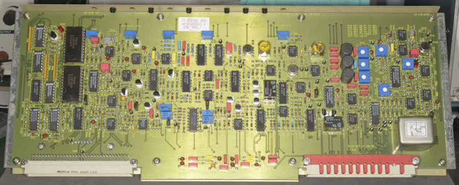 There is a line in the manual, in Section 4, Page 14, para 112 which reads 'locate the test points TP10/TP44/TP45, jumpers J4/J6. and potentiometers RV11 to RV14. Set J4 to the off position and set J6 to the on position'. I found all the test points and the two links, however, on the board that I was looking at, there was no RV11, RV13 or RV14. I only had RV12 ... and not only that ... whilst the manual showed IC31 as 14-pin MC1495, I was looking at an 8-pin AD633. Both chips are Analog Four-Quadrant Multipliers. Given the simplicity of the latter, I can see why the MC1495 was replaced and the board re-designed. The setup procedure in the manual is based on the Issue-D version of the board, whilst the one that I was looking at was an Issue-G board.