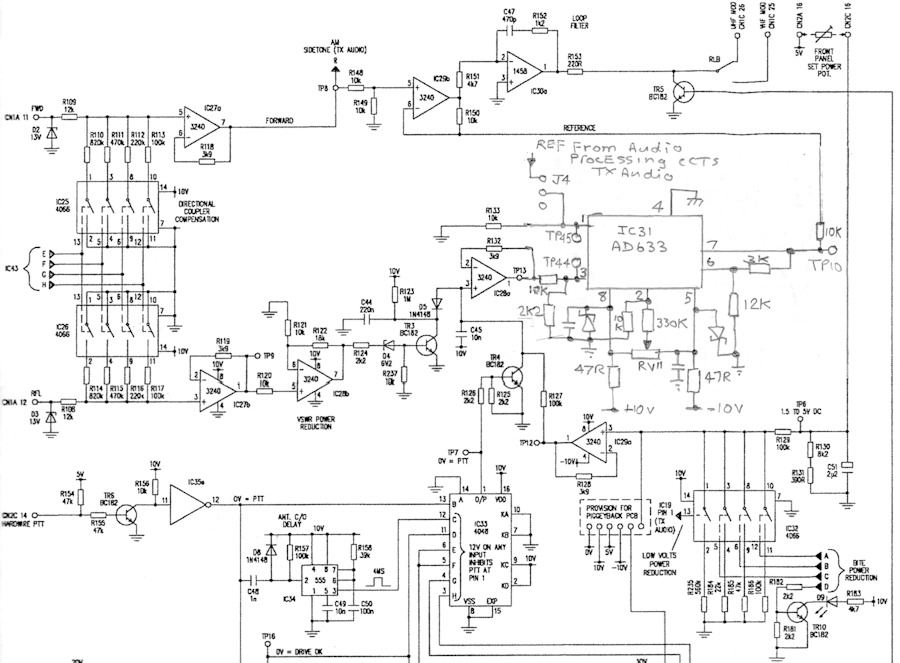 My client asked his source if they had a later version of the manual, one that might refer to the later version of the Transmitter Controller. Sadly, he did not. Towards the end of 2025, on noticing that some of the transceivers had their mod-labels struck off up to 5 or 6, 'we' had asked Park Air Electronics if they might be able to provide us with a list of changes relating to the numbers struck off on the label. That request had also drawn a blank. So, there was only one solution ... reverse-engineer the Issue-G board ... or at least the circuitry around the AD633.