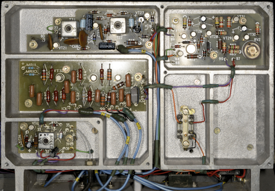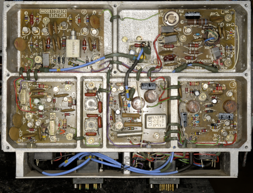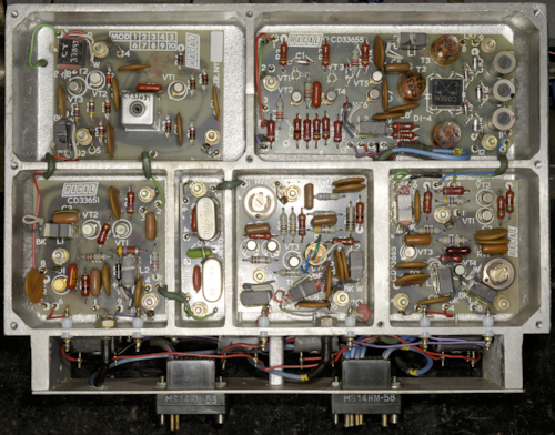 Above: Clock-wise from bottom-left: Limiter (CRX1), 1MHz Divider (CRX2), 200KHz Divider (CRX3), 100KHz Divider (CRX4), 1MHz Multiplier (CRX6).