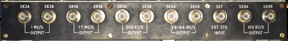 CRXJ - Takes whatever Frequency Standard is used and generates the following signals ... 100KHz, 200KHz, 300KHz and 1MHz. It also provides the triangle-wave for the Hunt Generator and the 300KHz to 400KHz signal for the Interpolation Oscillator.