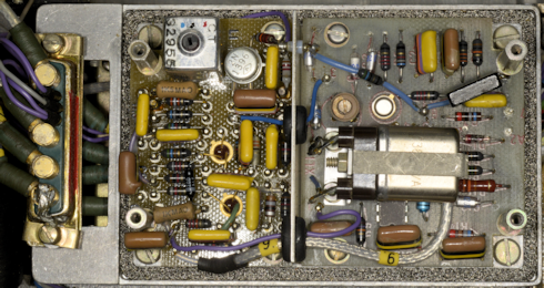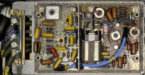 There are actually no less than three different Power Supply Units found across the RA1217/RA217 range. For the RA1217, the PSU is type PU1153. For the RA217, the PSU is type PU408. But for the RA217D, it is the PU410 that slots into the hole at the bottom of the rear panel. Unlike the other two PSUs, the PU410 is unique in that it is an SMPS. And dating from 1966, this has to be the earliest example of a Switch Mode PSU that I have come across. Unlike many of today's modern SMPSs which will happily run on any AC supply from 100V to 250V. This one has three options ... 125V AC, 250V AC, or 9 - 30V DC.