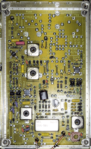 In the photograph above, the eight selectable preselector filters are on the left, sandwiched between PIN diode switches. Further to the right is the broadband RF amplifier, 1st Mixer and 1st IF amplifier stage. The two helical filters are on the far right. The 250.7MHz filter at the top with the larger 70.7MHz filter at the bottom with the selector circuitry in between. Admittedly this is a simplified description.