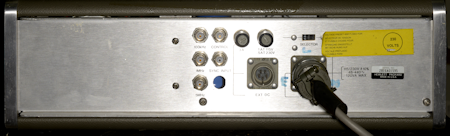 Finally; above left, the front of the 5065A with the door on the front panel folded up and locked in position. On the right, the rear of the 5065A showing the non-IEC screw-on mains cord. Before the advent of the IEC standard, early HP equipment came with a NEMA type connector on the rear panel for the mains cord. So why does the 5065A come with a mil-spec screw on connector? An educated guess would be that as both the NEMA connector and the IEC connector can inadvertently be pulled out; and accidentally switching off your frequency standard is very likely to upset someone ... a screw-on mains lead was probably considered a good idea.