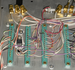 There are apparently three options available for the 5065A. Option 1 is a Time Standard. Option 2 is a Standby Power Supply (Battery with charger), and Option 3 is Options 1 & 2 together ... hmmm? This one was 'optionless'. Thus there was no reading on the meter when 'Battery' was selected. When set to 'Supply', the meter was off the scale ... not a good sign. Clearly the other switch positions were all indicative of a total system failure. There was a 5MHz signal at the front and rear panels but it was only about 50mV p-p when it should have been greater than 1V rms into 50-ohms.