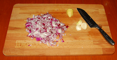One and a half red onions finely chopped.