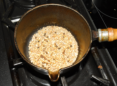 Pre-heat your oven to 160 degrees C. Over a medium heat, melt the ghee in a high sided heavy-bottomed pan. Now, add the lamb in batches, brown it and set it aside. Next add the onion to the ghee and sauté it until it is soft. This should take about five minutes. Whilst you are doing this, put the Cumin, Coriander, Cardamom seeds, Peppercorns and Cloves into a suitable pan and roast over a medium heat for a few minutes until they become fragrant then grind them in a pestle and mortar or spice grinder. Be careful not to burn them when roasting. Now add the ground spices along with the Garlic and Ginger to the onions and fry the mixture over a medium heat for about 3 minutes.