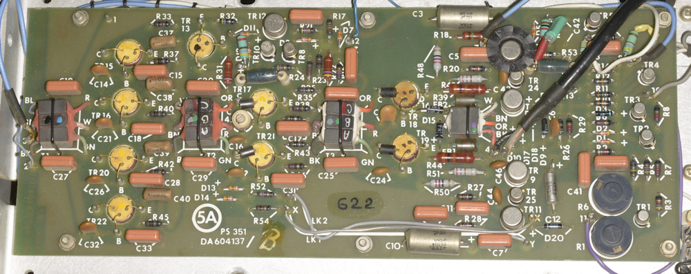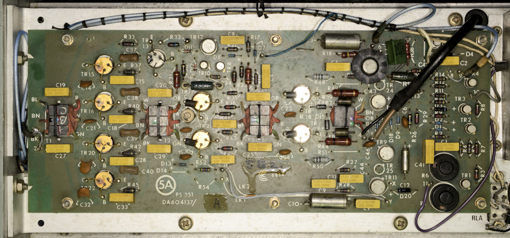 I was fortunate to come upon matched sets of eight 587BLYs, although it isn't thought that these were specifically intended as replacements for the MM420. But I wouldn't rule it out. As part of my investigation I found that per type, as the date of manufacture advanced, the measured hFE increased ... early 2N5102s typically exhibit an hFE as low as 15, while later ones yield hFEs around 35 to 45. Similarly, some 2N5102s manufactured by ASI give much higher hFEs ... some yielding in excess of 150! Given that the voltage gain of the High-Level Board input-pair is governed by the input and output networks, I substituted a pair of 2N5102s with hFE of 35 with a pair with an hFE of 135, with no adverse effect. As far as the pair of output quads are concerned, I would caution against replacing individual transistors UNLESS you are prepared to measure the hFE of each of the eight and match any replacement devices accordingly ... which is likely why Racal made replacement 587BLYs available in packs of eight. As a footnote, it might be OK to replace the input pair with different matched devices if, and only if you remember to change the value of 5AR18 and 5AR36 accordingly (see table above)