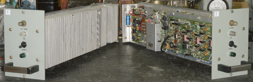 Unfortunately the advent of semiconductors did not mean that one valve could be replaced by one transistor. The RA1217 which can be considered a transistorised RA117 is a case in point. As far as I am aware the TA.1800 series was Racal's first foray into semiconductor-based power-amplifiers designed with long duty cycles in mind. Before that you had the TA127 ... an all-valve 1KW HF transmitter with an MA79G as the chosen RF source. The 1KW output came from a TA.99 amplifier which achieved this by way of only six valves! And it would do this with only 100mW of drive too.